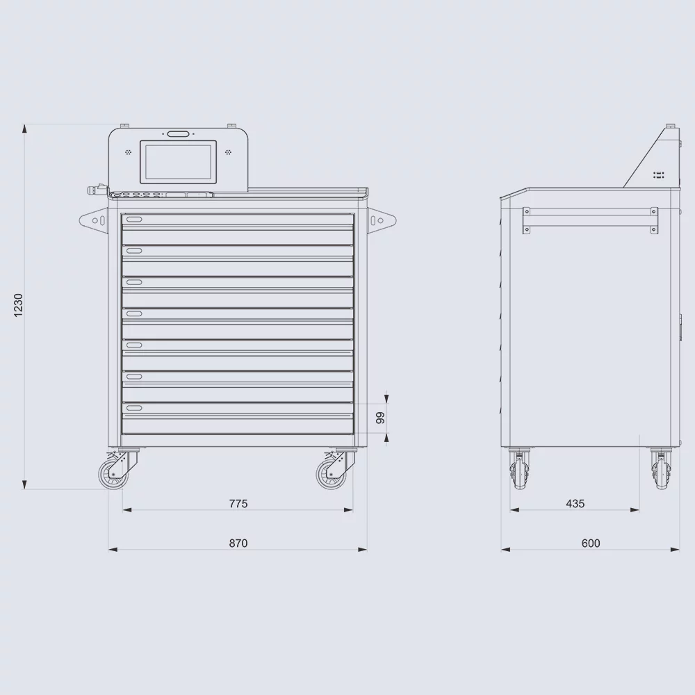 RFID智能工具车,斯科信息自研方案,利用RFID技术快速盘点工具,提升管理准确性与效率,实现信息化管理及航空业FOD精细控制。